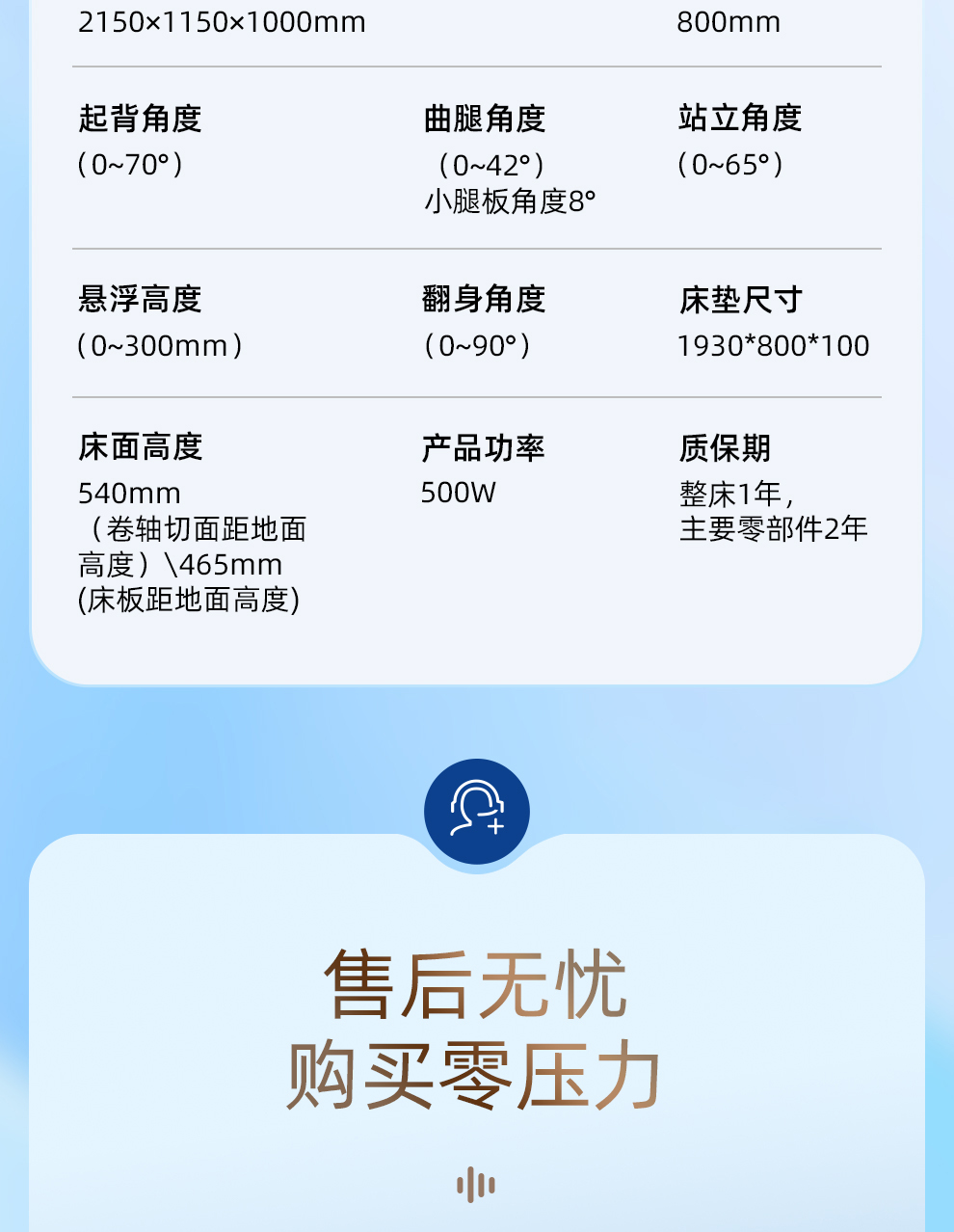 翻身角度(0~90°) 产品功率:500W