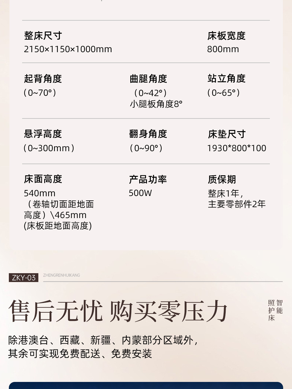 翻身角度(0~90°) 产品功率:500W